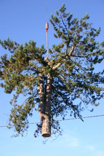 Mit einem Mobilkran kann der Baum schnell entfernt werden.
